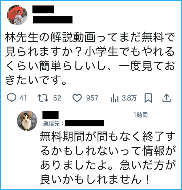 林先生の解説動画が気になるなら急いだ方が良いかもしれません。